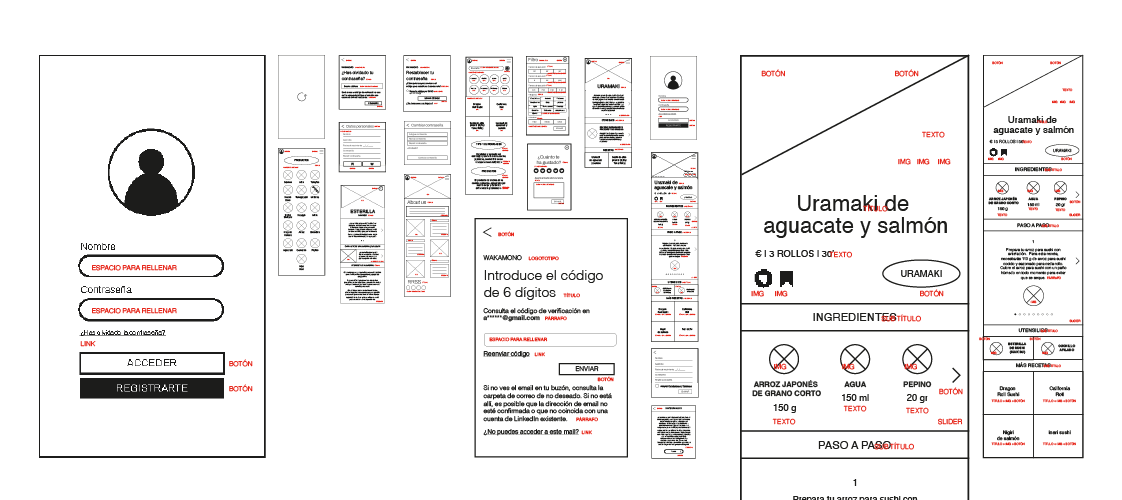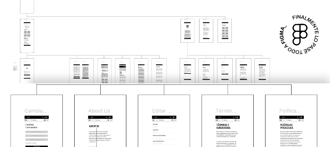 Ya en FIGMA reproduzco la estructura de la app con el contenido de texto real, disponiendo los espacio para las imágenes e intuyendo el diseño final.